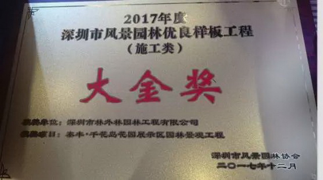 熱烈慶祝“泰豐·千花島”又榮獲大獎---深圳風景園林類優(yōu)良樣板工程(施工類)大金獎!泰豐出品,必屬精品!