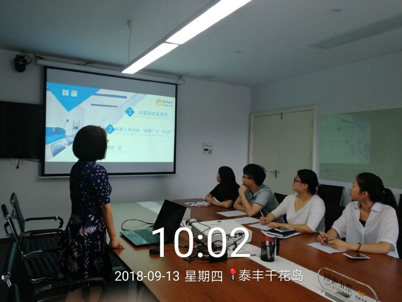 培訓(xùn)由客服部客服經(jīng)理王薇主講,整個培訓(xùn)過程從規(guī)避風(fēng)險、前期防范、溝通售后等方面進(jìn)行詳細(xì)講解,并多出舉例說明,讓客服部同事收益匪淺。