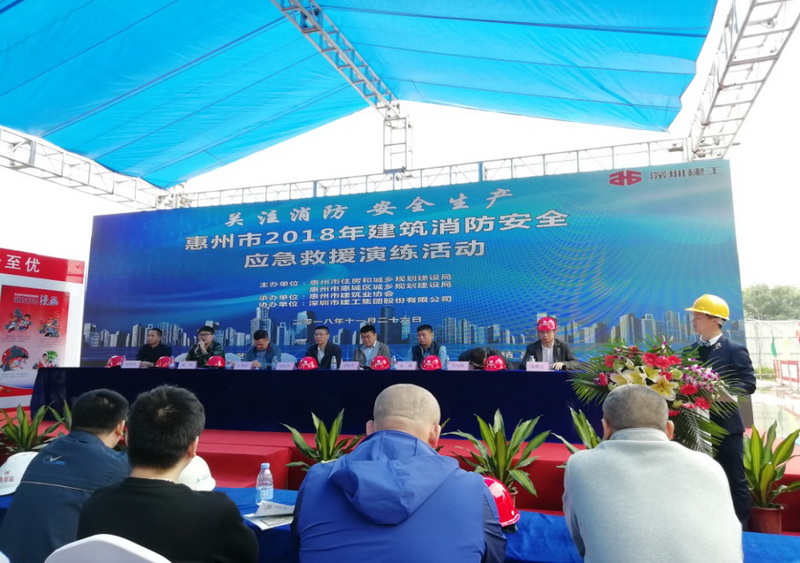 惠州市住建局建筑管科負責人、惠城區(qū)規(guī)建局分管安全負責人、建工科負責人、市消防大隊負責人、市直及惠城區(qū)各在建工地的項目現場負責人共逾500人參與了此次建筑消防安全應急救援演練活動。