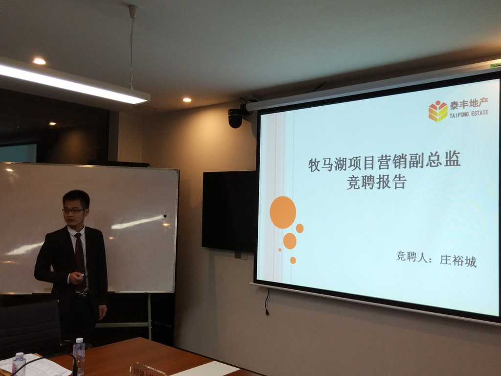 2016年10月31日16:00,泰豐地產(chǎn)營銷部崗位競聘召開。泰豐地產(chǎn)副董事長兼總裁袁毅先生率領(lǐng)市場營銷中心、人力資源中心、資財(cái)中心、千花島項(xiàng)目、大亞灣區(qū)域等高層領(lǐng)導(dǎo)及人資行政負(fù)責(zé)人擔(dān)任評委。