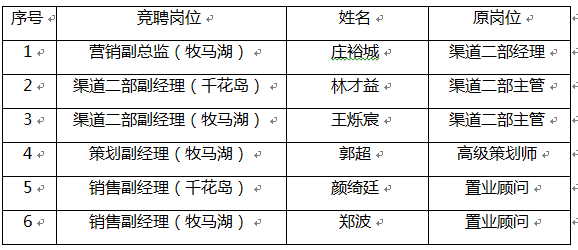 最后,祝賀莊裕城、林才益、王爍宸、郭超、顏綺廷、鄭波等六位同事競聘成功。本次未競聘成功的同事,希望能樹立目標(biāo),再接再厲,在新的崗位上取得優(yōu)秀的業(yè)績。隨著公司的快速發(fā)展,崗位競聘的機(jī)會(huì)也會(huì)越來越多,公司期待著更多優(yōu)秀人才的積極涌現(xiàn),與公司同成長,共發(fā)展。