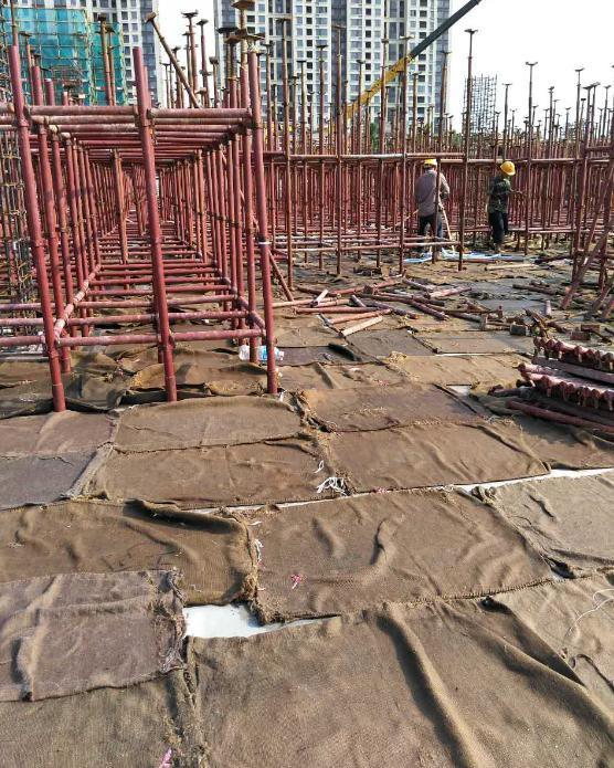 8、主體混凝土結(jié)構(gòu)采用麻袋覆蓋養(yǎng)護(hù),確?;炷翉?qiáng)度;