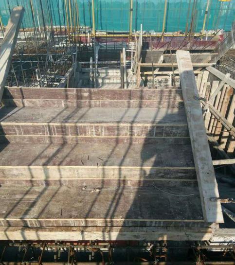 9、樓梯踏步采用封閉模板安裝施工,保證振搗密實(shí)、表面觀感優(yōu)良;
