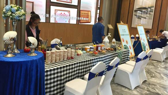 冰沙區(qū)域精美的裝扮和美味的食材也是十分誘人,客人們紛紛上前要求品嘗,工作人員熱心地為客人們現(xiàn)場(chǎng)制作。