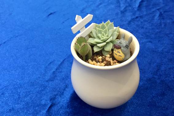在場(chǎng)有一位特別認(rèn)真的女士,她大功告成的作品猶如一件精致而特別的工藝品,得知是一位幼兒園教師,平時(shí)很喜歡一些小清新風(fēng)格的手作和美食。今年剛和先生購(gòu)買了一座泰豐牧馬湖的別墅,希望在入住后把自家的花園裝飾得美美的,要擺滿自己diy的多肉植物,給孩子營(yíng)造出更有趣味的花園;自己多制作美食,讓家里天天都充滿朝氣和愛(ài)。