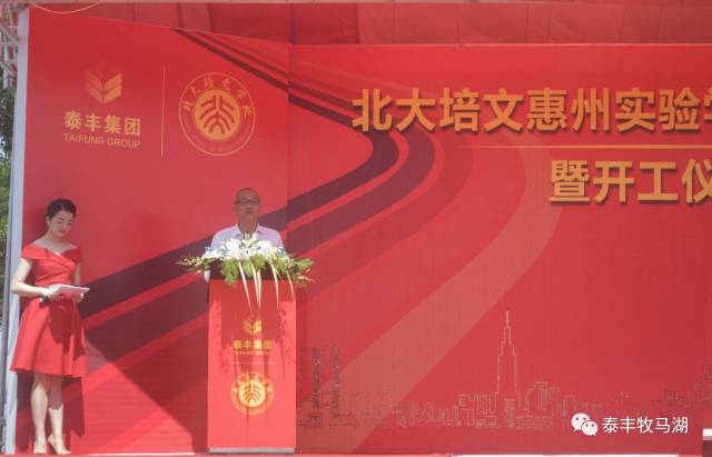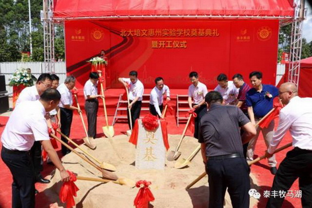 2017年6月8日上午9點(diǎn),由泰豐集團(tuán)在泰豐·牧馬湖斥巨資打造的重量級(jí)教育配套——北大培文惠州實(shí)驗(yàn)學(xué)校舉行盛大奠基儀式。出席儀式的有大亞灣管委會(huì)副書記:張?zhí)聿畔壬?;惠州大學(xué)校長(zhǎng):彭永宏先生;大亞灣管委會(huì)副主任:楊遠(yuǎn)輝先生;大亞灣宣教局局長(zhǎng):曾文浪先生;北大培文副總裁、陽(yáng)光教育集團(tuán)總經(jīng)理:徐揚(yáng)華先生;北京大學(xué)原教務(wù)長(zhǎng):吳寶科先生;北大附中原校長(zhǎng):趙鈺琳先生;陽(yáng)光教育集團(tuán)廣東總校長(zhǎng):樊瑞先生;北大培文貴州總校長(zhǎng):沈連柱先生;泰豐集團(tuán)董事長(zhǎng):吳李彬先生;泰豐地產(chǎn)副董事長(zhǎng)兼總裁:袁毅先生;泰豐地產(chǎn)董事:許浩先生;惠州市豐泰城房地產(chǎn)有限公司董事:陳閣洲先生;以及泰豐集團(tuán)的各位領(lǐng)導(dǎo)和合作單位的各位嘉賓。