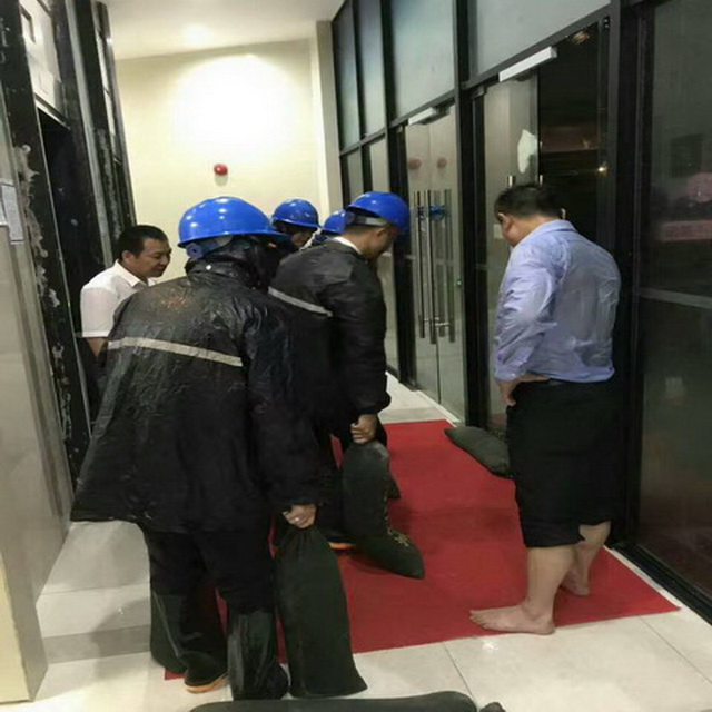 在臺風來襲之前,物業(yè)經理迅速組織了服務中心部署抗災預防工作,嚴格落實防臺風應急預案,周密部署、眾志成城,夙夜奮戰(zhàn),全力以赴把損失降至最低程度。