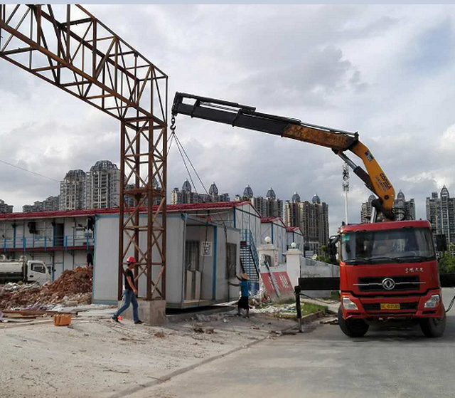二期總包施工主入口大門門柱安裝中。