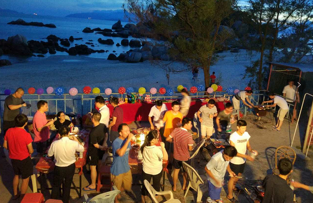 伴著皎潔的月光,聽著悅耳的海浪,露天K歌也別有一番味道,動(dòng)人的歌聲將現(xiàn)場(chǎng)氣氛推向高潮。大家在這個(gè)和諧的大家庭里,感受著親人之間的溫馨和溫暖。
