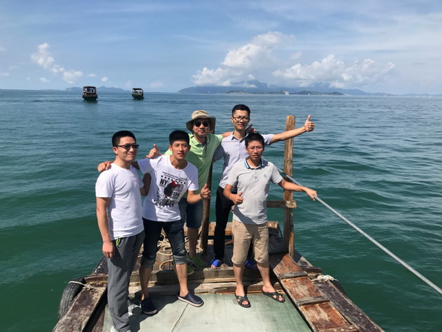 第二天一早,興致昂揚(yáng)的同事們?cè)缭鐏?lái)到碼頭集合,我們出海捕魚啦!漁船駛離港口撒下漁網(wǎng),途中欣賞三角洲島碧綠的水、湛藍(lán)的天,無(wú)比愜意。最后在大家的期待和男同胞齊心合力下收網(wǎng),雖然休漁期收獲不多,但我們體會(huì)的是捕魚過程的快樂。