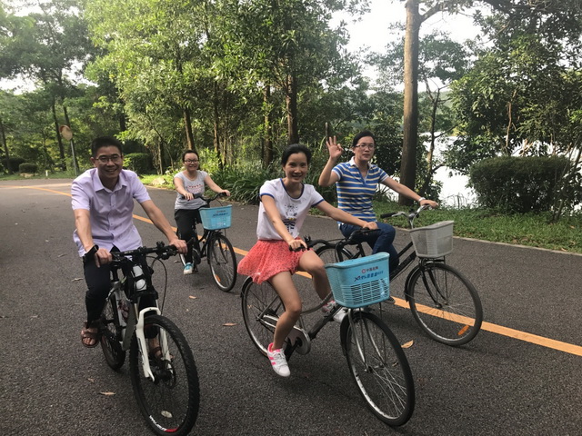 當(dāng)天下午華威一行自駕出發(fā),到達(dá)紅花湖綠蔭騎行道后,各自挑選了騎行裝備,開始騎行。本次騎行為環(huán)湖18公里,途中大家一邊欣賞風(fēng)景,一邊流著汗賣力踏著單車,興致盎然,并不感到疲倦,反而更散發(fā)出奮發(fā)的朝氣。到達(dá)18KM目的地后,湖面佛過的微風(fēng)撲面而來,令人心曠神怡,更感受到運(yùn)動(dòng)后大汗淋漓的快樂。