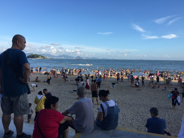 周邊客房全部爆滿,游人如織;藍(lán)天白云里海風(fēng)輕撫每一張燦爛的笑臉,快樂像海浪一樣,此起彼伏,一浪高過(guò)一浪;波光粼粼,熱辣無(wú)限!
