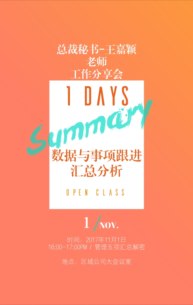 數(shù)據(jù)的匯總和事項(xiàng)的及時(shí)跟進(jìn)落實(shí)對(duì)一項(xiàng)工作的重要性不言而喻,但是職場(chǎng)中很多人都會(huì)忽略其重要性,如何快速的理解上級(jí)交辦任務(wù)、提高大家的事項(xiàng)跟進(jìn)效率。大亞灣區(qū)域公司于2017年11月1日,特邀請(qǐng)了集團(tuán)總裁秘書王嘉穎就數(shù)據(jù)與事項(xiàng)跟進(jìn)技巧和經(jīng)驗(yàn)做分享。