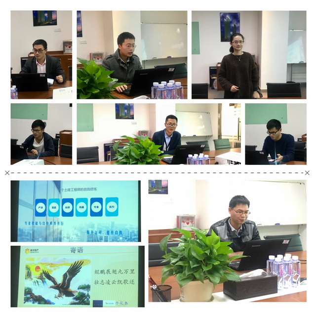 述職人員分別從“2017年工作總結(jié)、工作重難點剖析、改進(jìn)措施、心得體會及2018年的工作計劃等”幾個方面進(jìn)行了述職匯報。大家的述職報告精彩紛呈;有人用數(shù)據(jù)說話標(biāo)明這一年的業(yè)績,有人用照片見證這一年的工程進(jìn)度,有人融入詩詞對工作進(jìn)行總結(jié)展望,有人用大鵬展翅對新一年的期望。